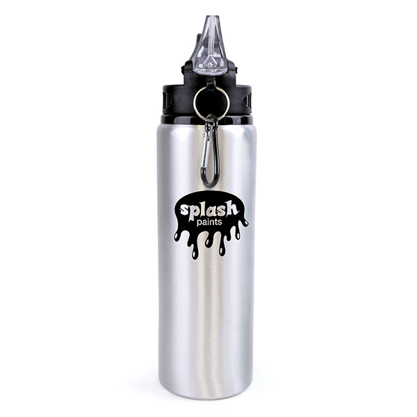 Fashion sports bottle Capacity: 800ml Single walled aluminium construction Integral sipping straw cap Black carabiner clip