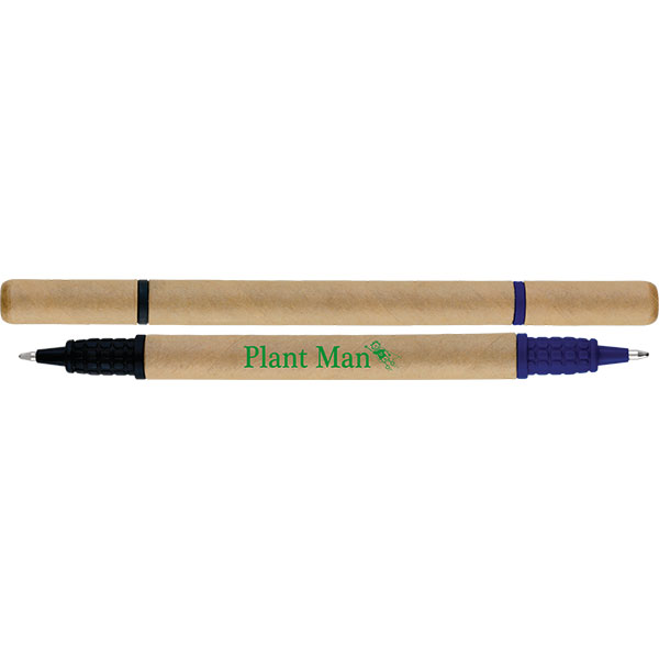 Biostick Duo ballpen Double ended ballpen Recycled paper barrel and corn starch trim Ink colours: Black and Blue