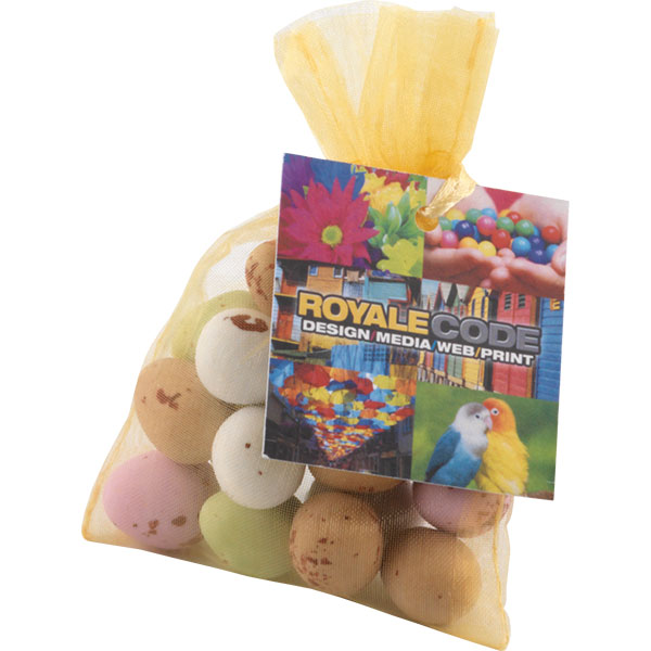 Large organza bag of mini eggs 150g mini eggs Includes printed tag