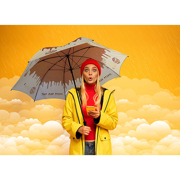 Fibrestorm golf umbrella Storm-proof design Lightweight fibreglass frame 14mm stem Black pistol grip handle Polyester panel material